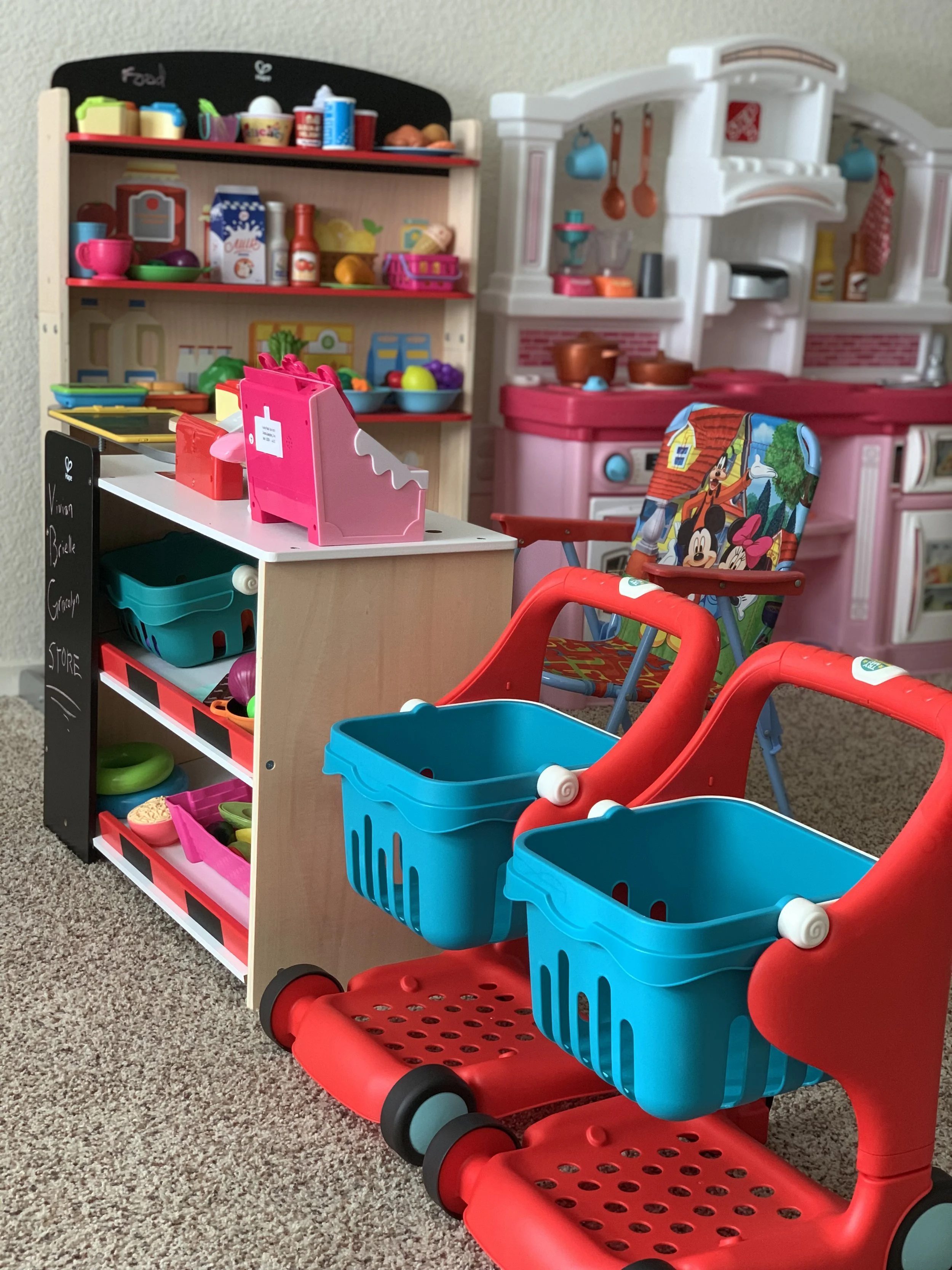 We have fun dramatic play areas for children to use with their imagination. We have a bakery shop, food market, shopping carts, and many more.
